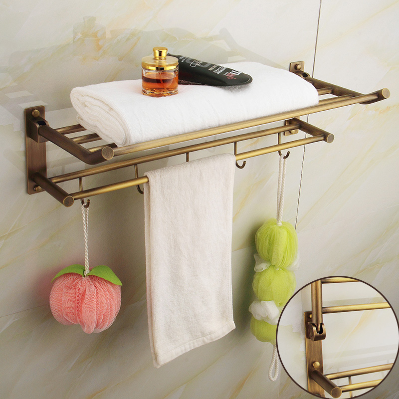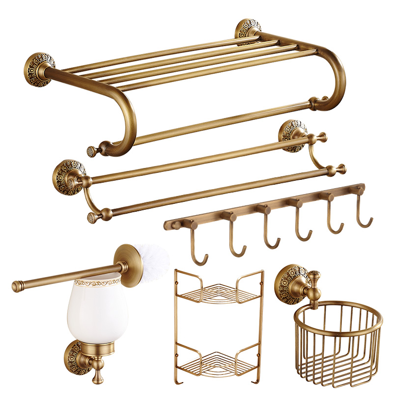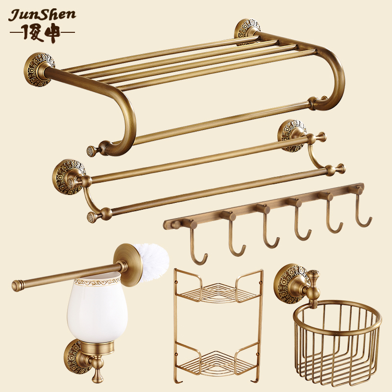 European style towel rack set American style full copper antique bath towel rack toilet towel bar retro bathroom storage rack