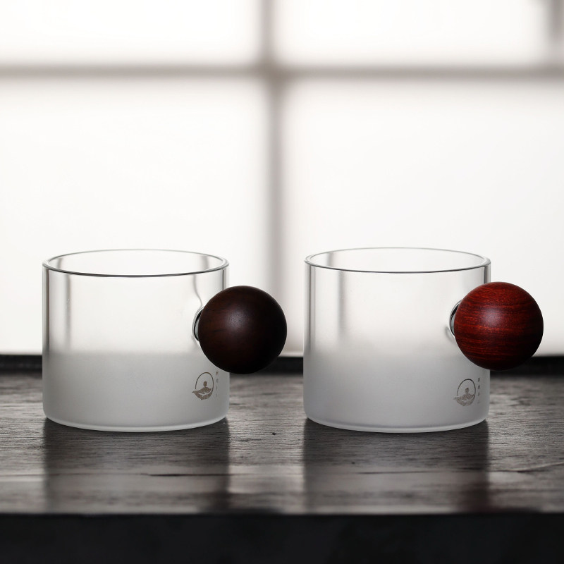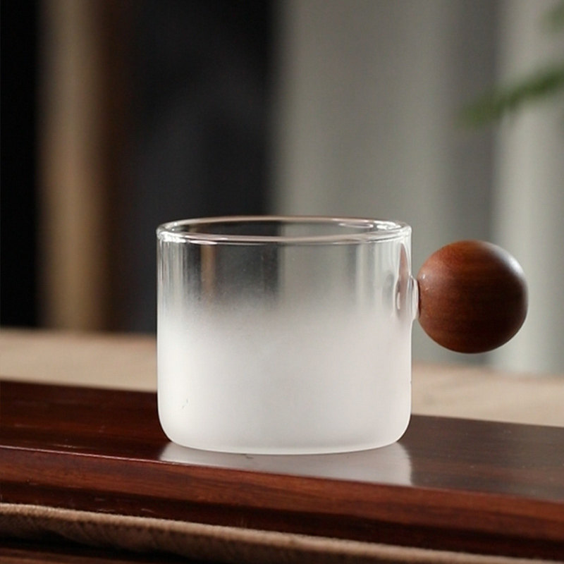 Solid wood with the tasting cup Tea cup Tea Cup Condensed Coffee Cup Frosted Day Style Little Mug Cloud Foggy Heat Glass Cup Mouth Cup