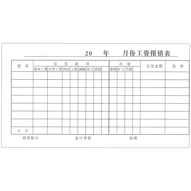 20 This salary statement is issued payroll settlement single small horizontal summary wage bill Goods wages Payroll Reimbursement Slip
