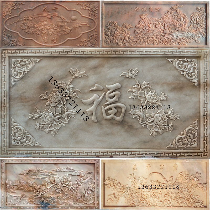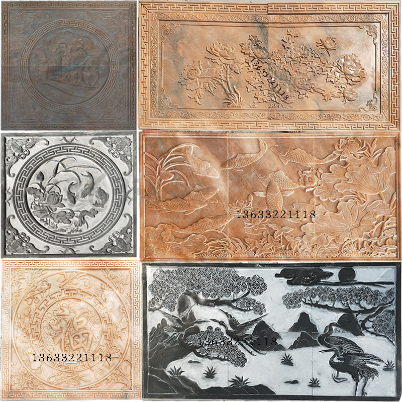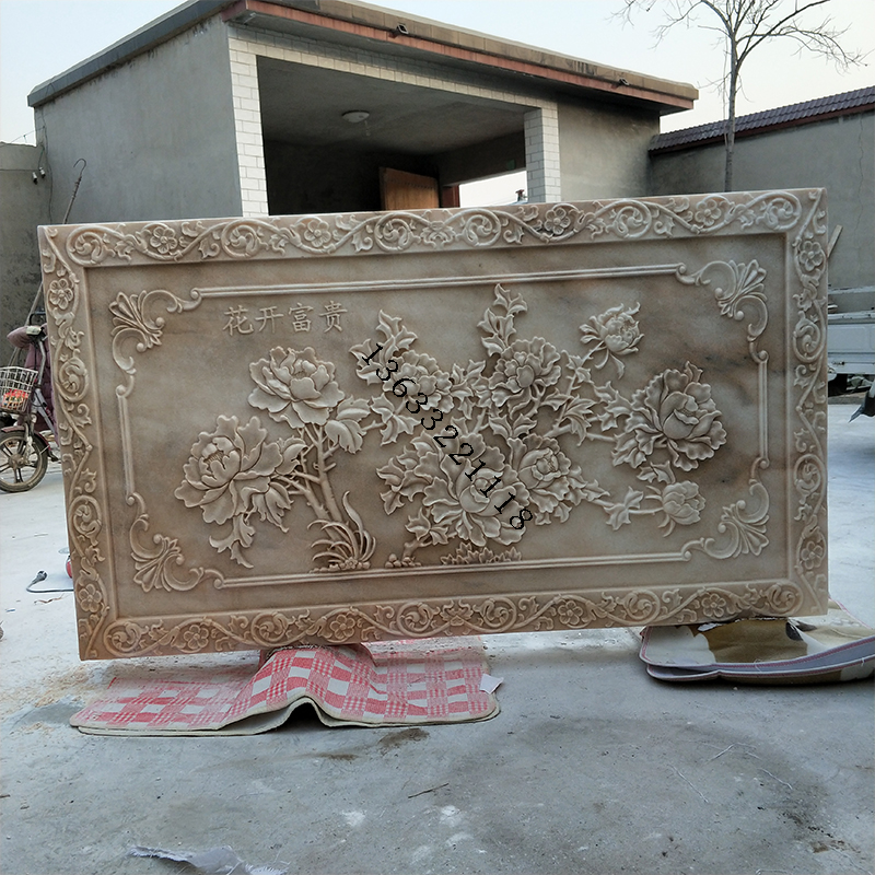 Stone Sculpture Relief Flowers Open Rich And Expensive Xuanguan Courtyard Marble Head Stone Carving Screen Peony Flowers Birds Bat Ground Carving Villa