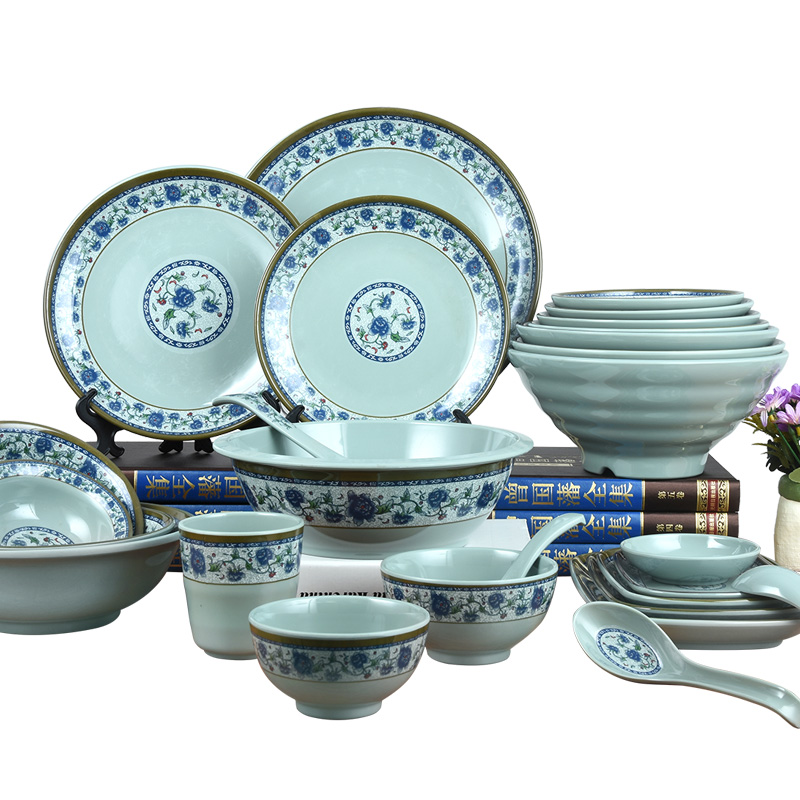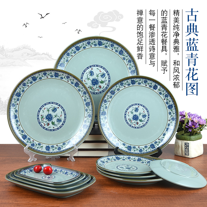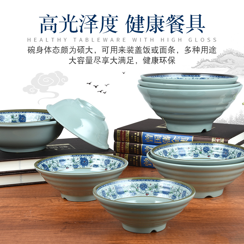Blue blue and white imitation porcelain bowl anti-drop plastic snail powder bowl Shaxian melamine tableware large Bowl soup bowl noodle bowl rice Hall commercial