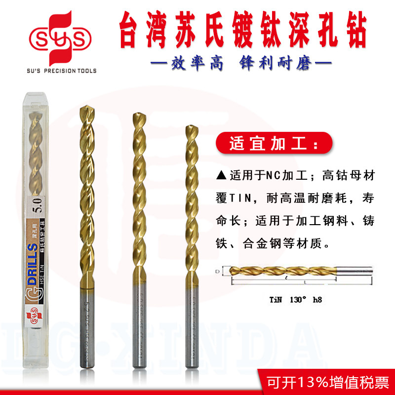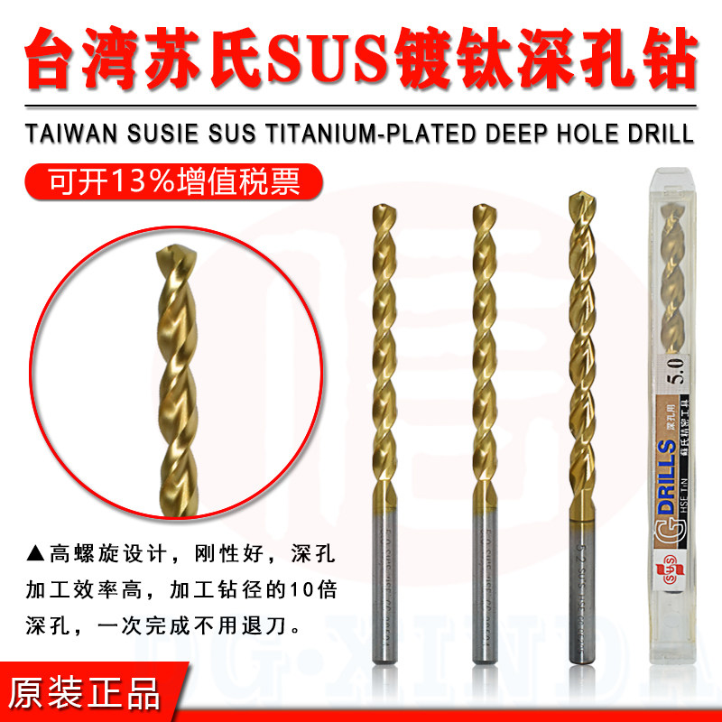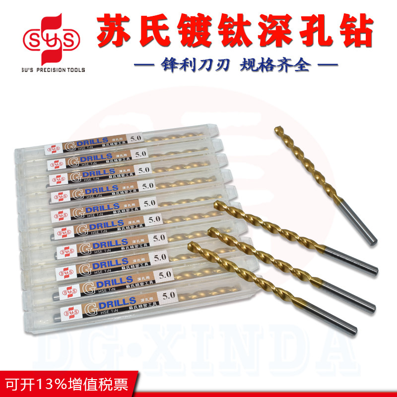 Taiwan Su Shi SUS straight shank titanium plated deep hole cobalt drill high cobalt stainless steel strong twist drill G112 series