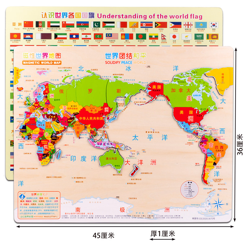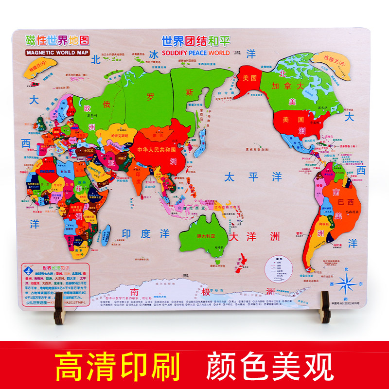 World Map Puzzle China Magnetometric Geo Toys Children Magnetic Woody Junior High School Students of Puzzle Force Elementary School Students