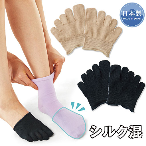 Japan-made cecile silk five-finger socks half socks sweat-absorbing and deodorant 2 pairs of men and women one-size-fits-all sweat-absorbing and breathable