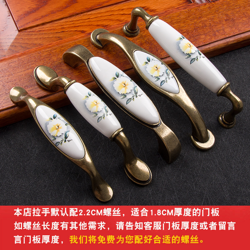 Ceramic Handle Single Hole Eurostyle Antique Drawer Handle American Overall Cabinet Wardrobe Subgreen Ancient Bronze Tea Flower Fields Garden Handle