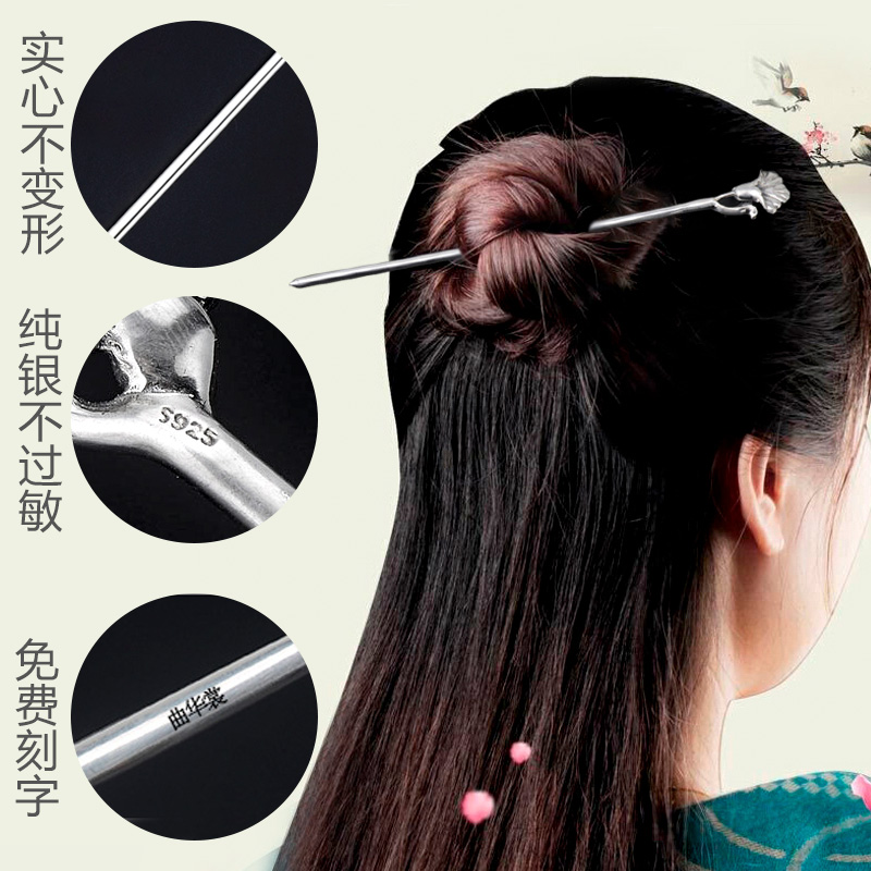 S925 sterling silver solid hairpin Shaky ancient style women's Hanfu hairpin Classical court pan hair ornaments holiday gifts