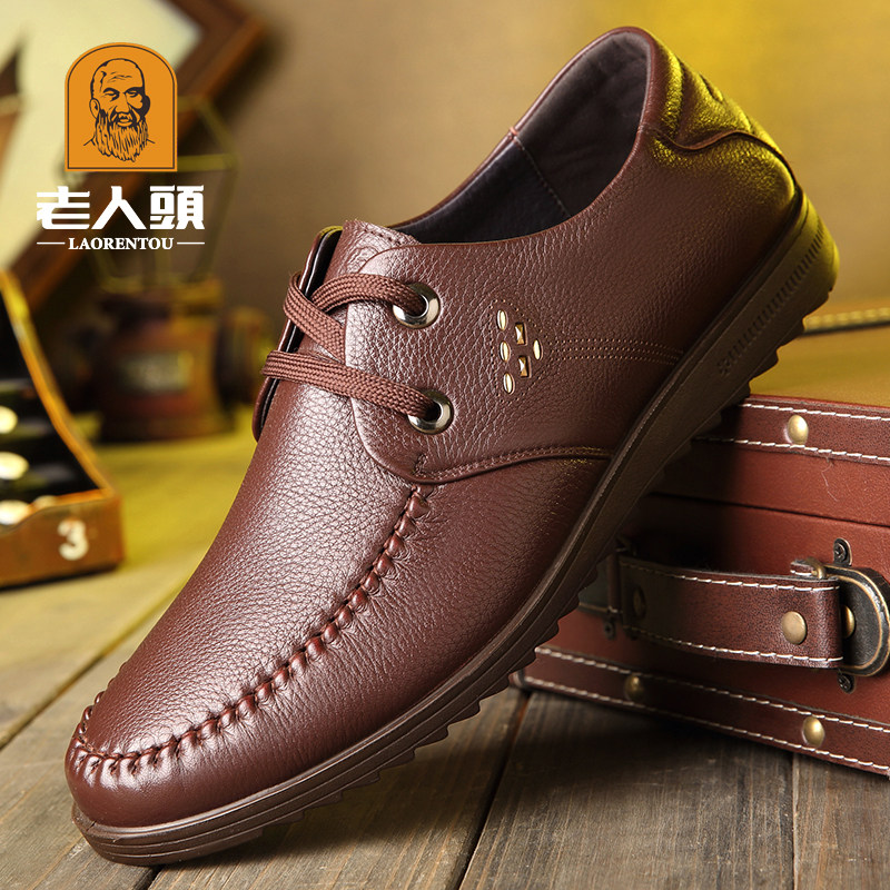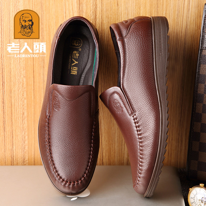 Old man's head men's shoes autumn business casual shoes men's leather breathable leather shoes men's soft surface soft bottom non-slip dad shoes