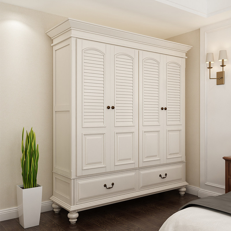 American solid wood wardrobe country retro shutter door wardrobe modern minimalist furniture light luxury bedroom storage cabinet