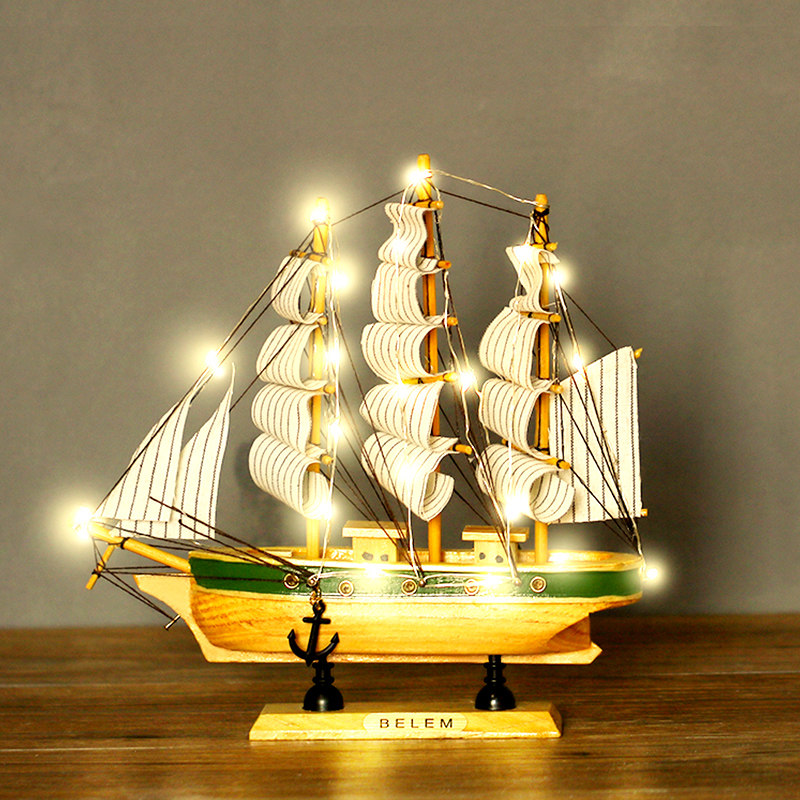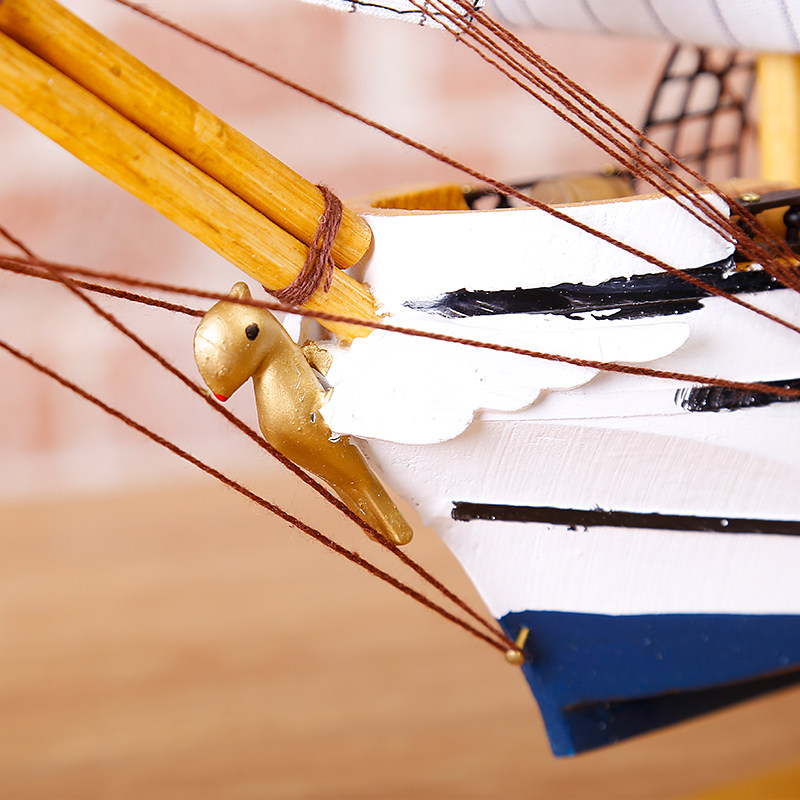 Sailing boat model ornaments Smooth sailing wooden boat Mediterranean style decoration craft gift decoration simulation props Pirate ship model