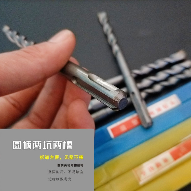 Lengthened wearing wall electric hammer drill bit concrete drill two pits two grooves round handle four pit square handle shock drill bit