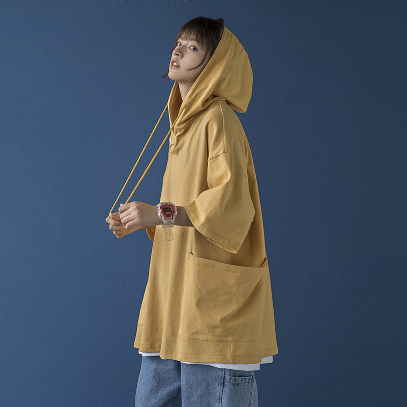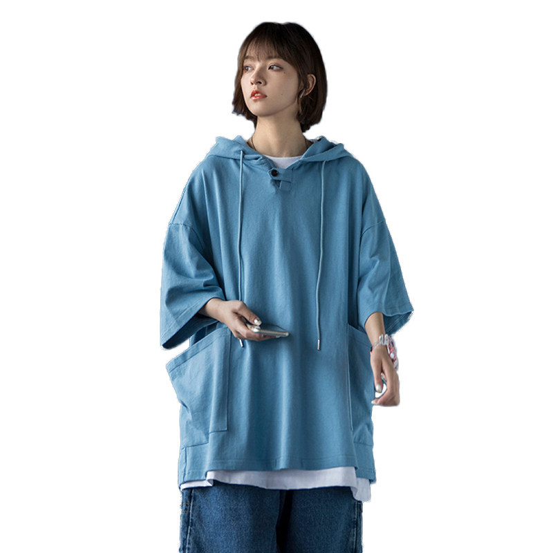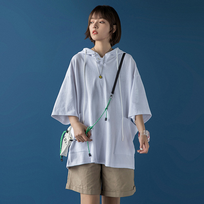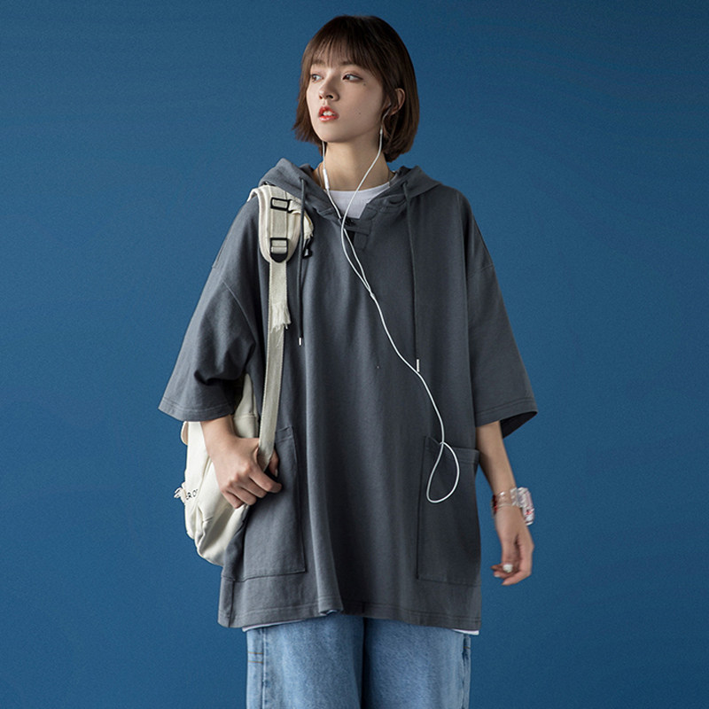 Short-sleeved sweater women's summer 2021 new middle and high school students college style loose and wild thin hooded T-shirt