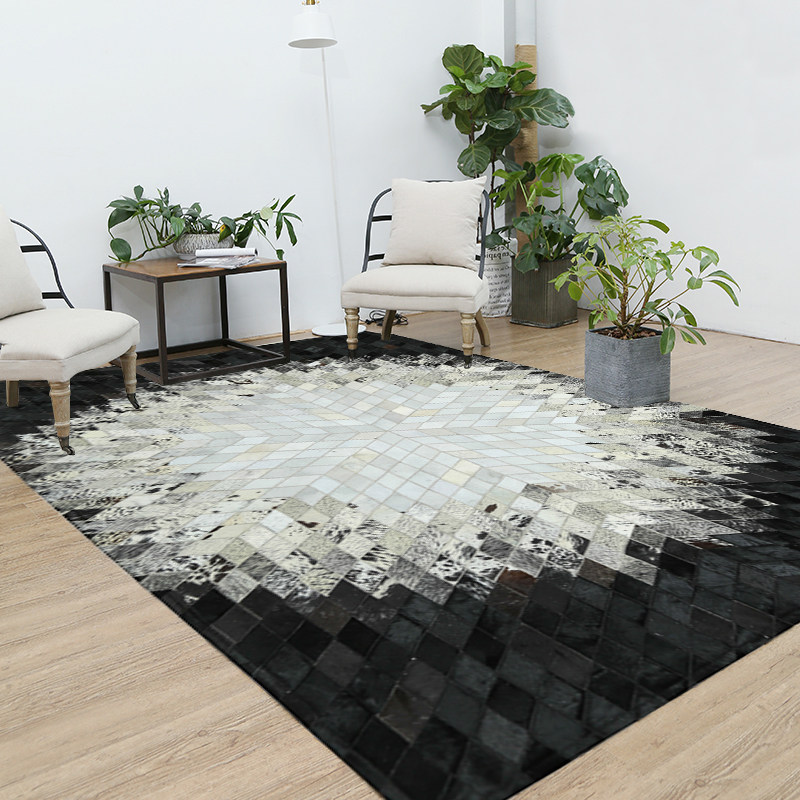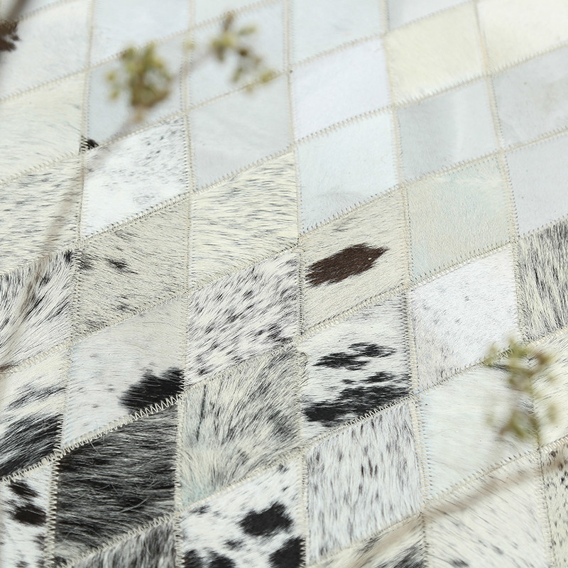 Imported Dairy Cow Leather Parquet Carpet Geometric Living Room Sofa Tea Table Cushion Bedroom Handstitch Cow Leather Carpet
