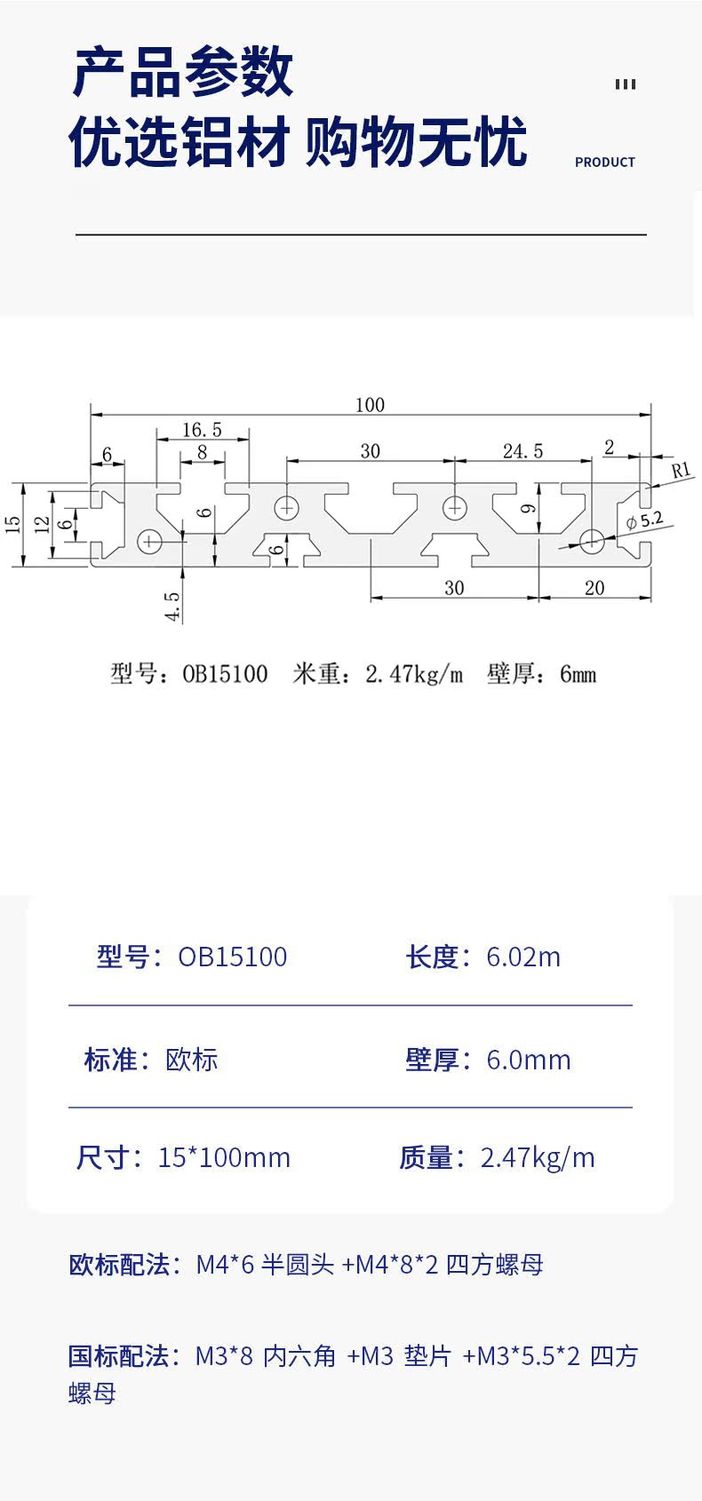 Industrial aluminium extrusion materials Euro 15100 aluminum alloy aluminum material 15 * 100 assembly line engraving machine panel accessories