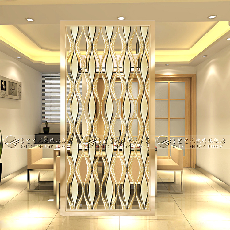 Hot sale art glass home improvement aisle Living room screen partition entrance background Simple European double-sided translucent lattice