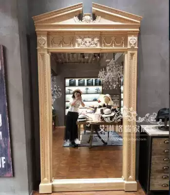 Spot American country retro old solid wood full-length mirror Full-length mirror carved floor-to-ceiling mirror Villa living room decorative mirror
