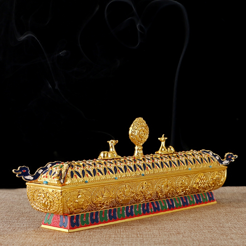 Jing Tai Blue Sleeper Furnace Concealed home Eight auspicious horizontal Tibetan incense stove line Incense Case Room Incense Stove for Buddha