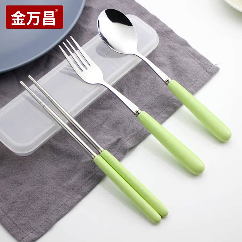 Portable cutlery long handle chopsticks spoon fork three-piece suit creative Korean style student children stainless steel fork spoon box