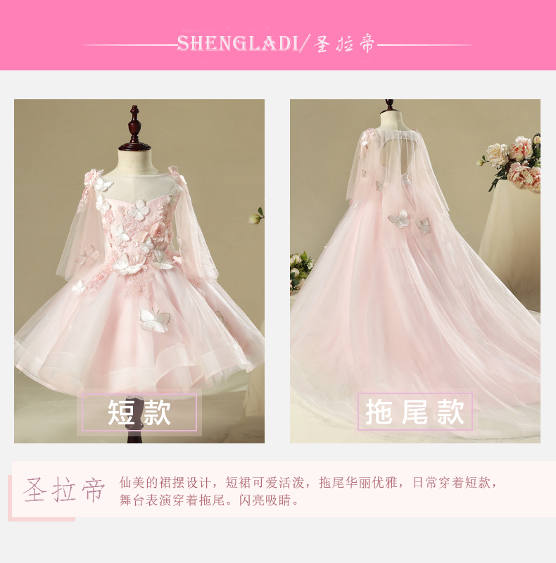 Children's Gown Princess Dress Girl Evening Gown Pink Trailing Fluffy Dress dress Dress Presenter Acting Out Costume-Taobao