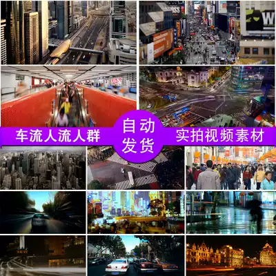 Car flow crowd, modern urban city fast-paced night scene time-lapse photography HD real film material