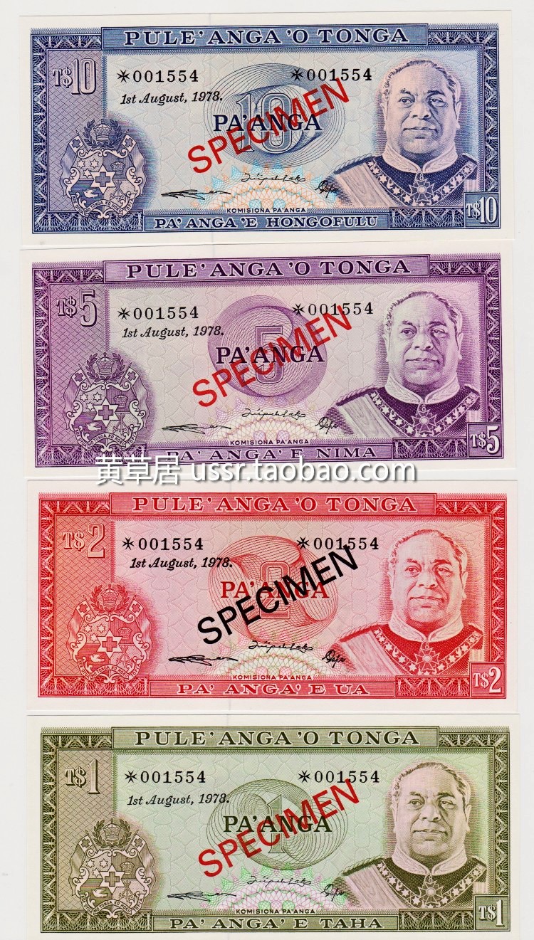 Fidelity Tonga 1978 banknotes 1 2 5 10 Panga sample currency sample ticket 4 full set