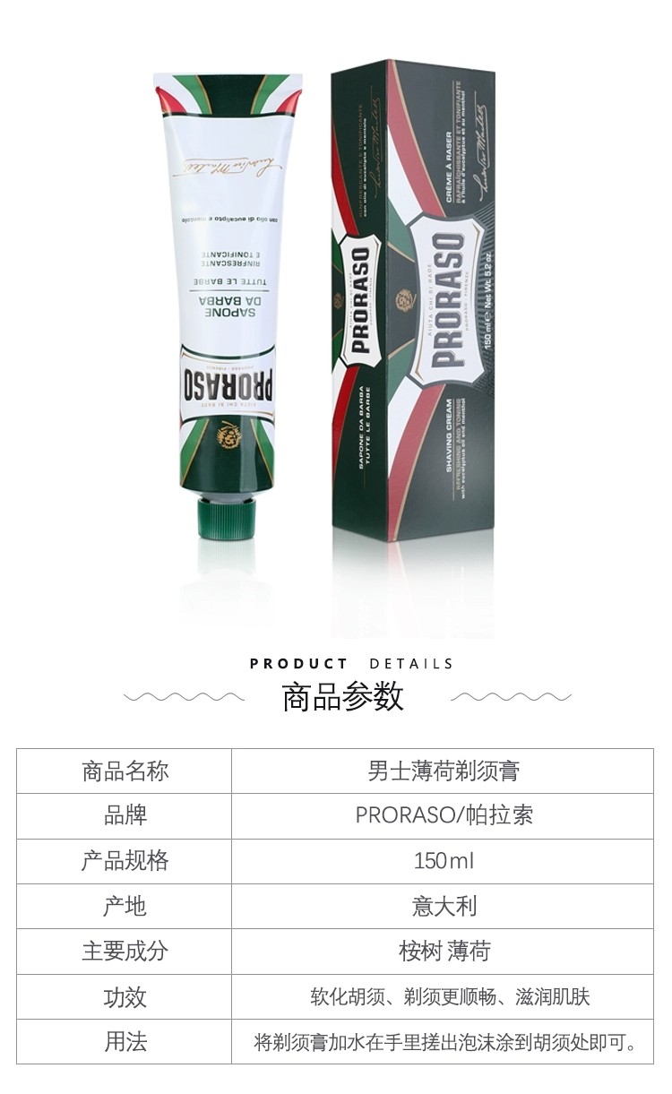 Proraso Italy Boraso Eucalyptus Mint Classic Men's Shaving Cream Refreshing Shaving cream 150ml