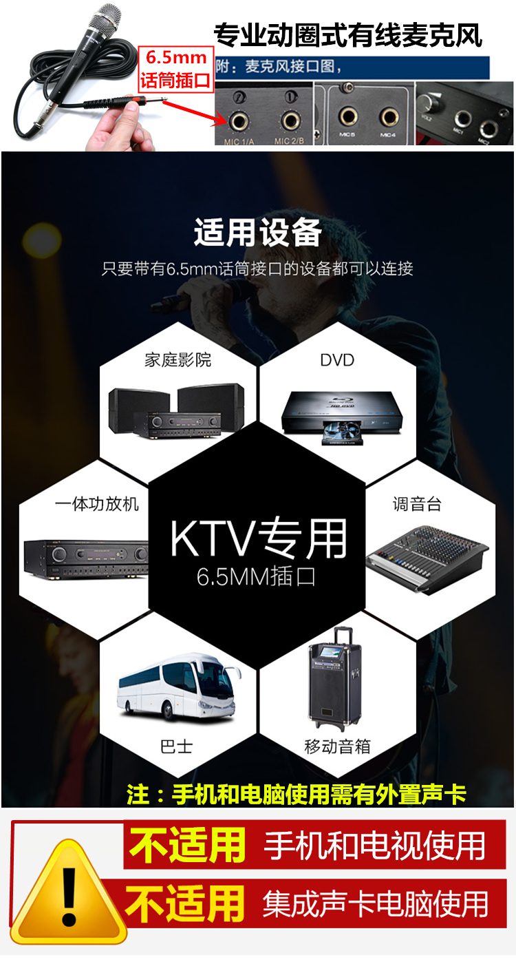 Outdoor audio singing DVD home wired microphone stage performance KTV power amplifier dedicated moving coil microphone