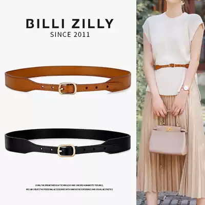 First layer cowhide waist belt Leather fashion all-match ins decorative belt Women's summer with skirt suit thin waist belt