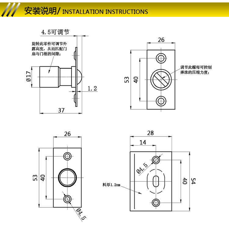 Pure copper door bead door buckle top bead invisible door bead wooden door spring bead KTV special gold and silver bead lock