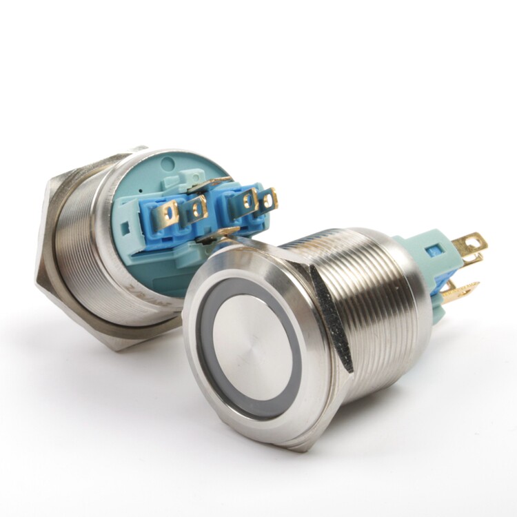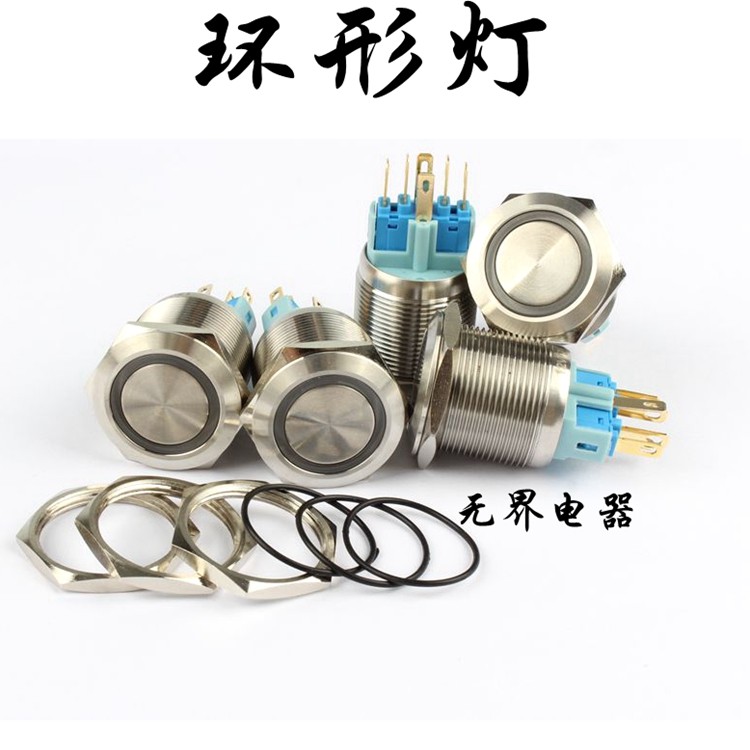 DMWD22mm metal stainless steel button switch self-lock self-rewinding ring power LED electric light switch waterproof 24V