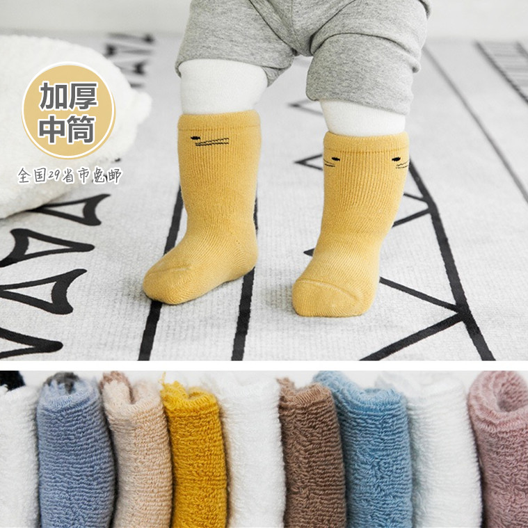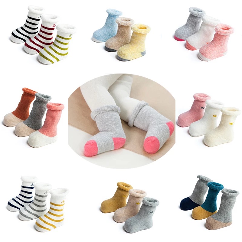 3 Double Loaded Autumn/Winter Baby Socks 0-3 Month Newborns Pure Cotton Thickened Loose Mouth Midbarrel Baby Mwoops Socks
