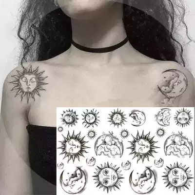 Dark sun moon shoulder realistic tattoo stickers Magic girl clavicle waterproof realistic tattoo stickers