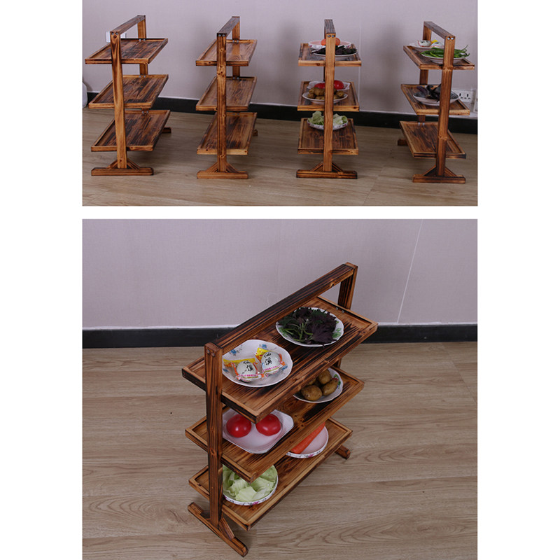 Kitchen Vegetable Rack Solid Wood Vegetable Shelf Carbonated Hot Pot Vegetable Shelf Triple Shelf Set Fire Wood Vegetable Rack Hotel Vegetable Rack