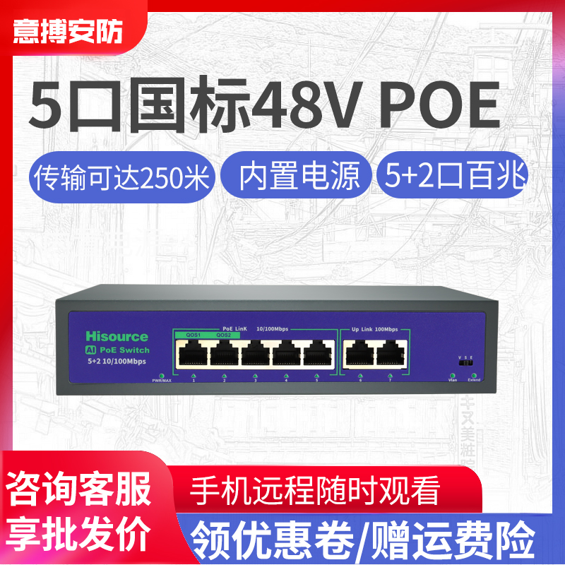 Crowdsourced source 6 mouth 5 power supply 2-mouth cascade 100 trillion 48V national Peers POE switch Transmission distance 250 m
