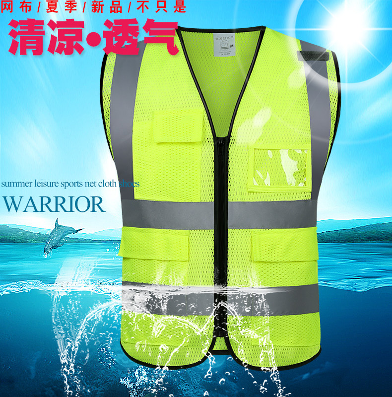 Summer reflective vest mesh safety yellow vest breathable multi-pocket sanitation traffic clothes construction site construction