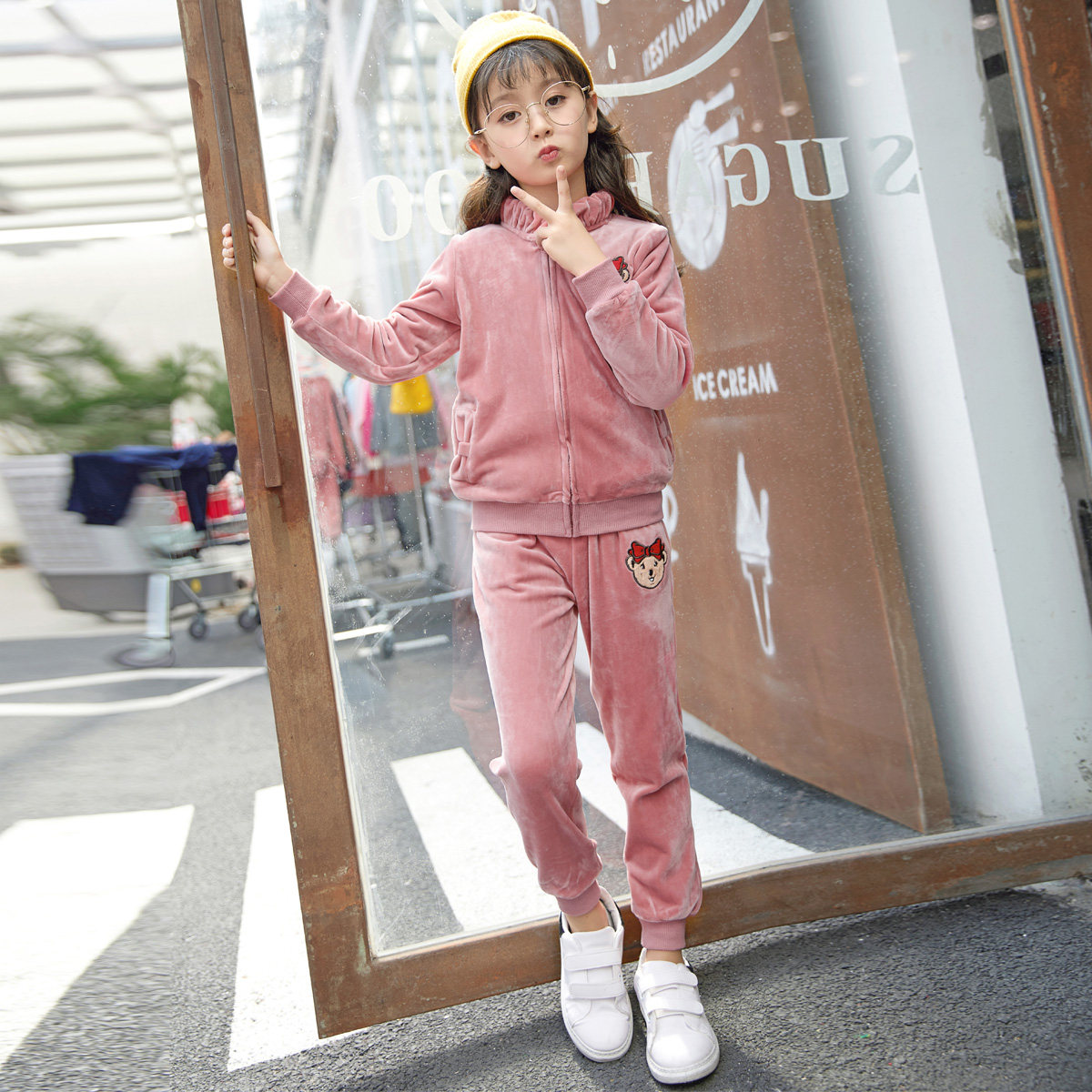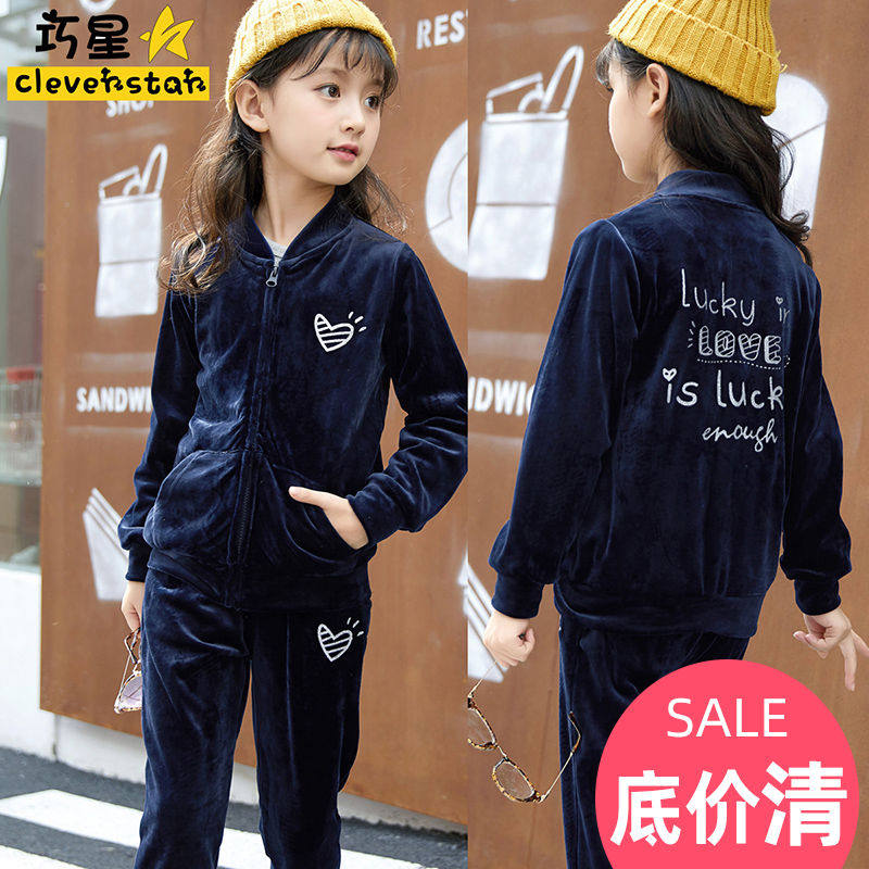 Girls Spring Clothes 2020 New Children's Velvet Gold Velvet Galaxy Girls Sportwear Zipper Sweater