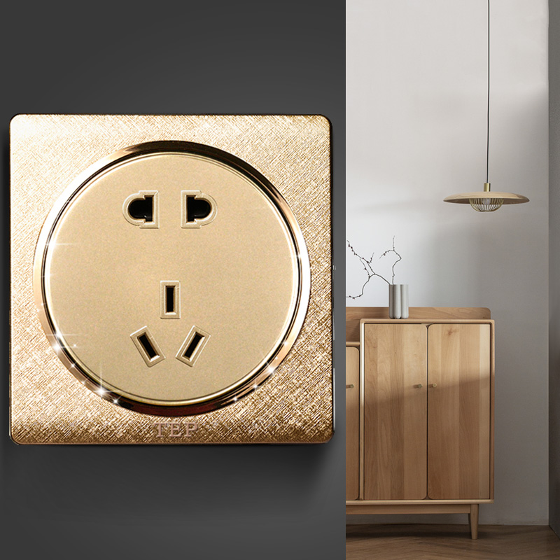 Home Champagne Gold Switch Socket Panel Package 86 Type Wall Power Concealed 23 socket 5-hole socket