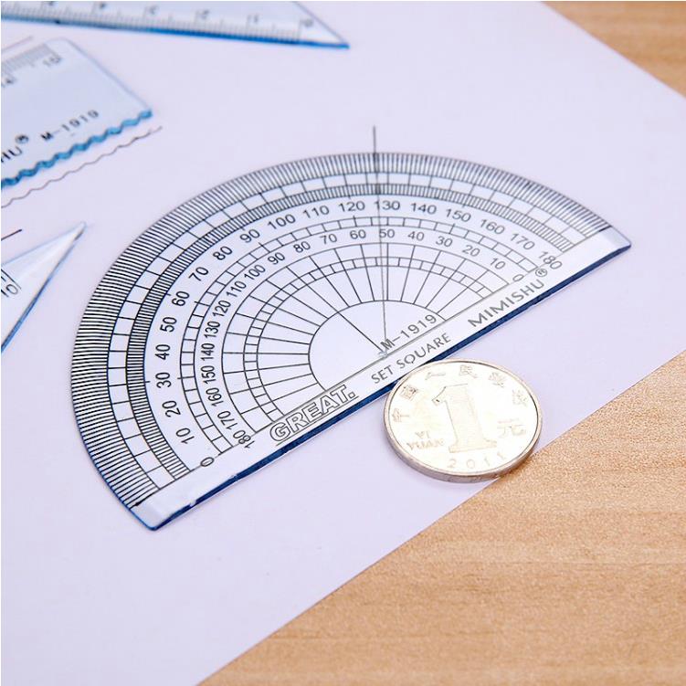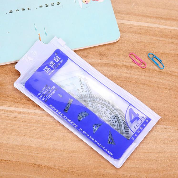 Triangle ruler creative simple student stationery set ruler 15cm transparent protractor drawing and painting 4-piece set