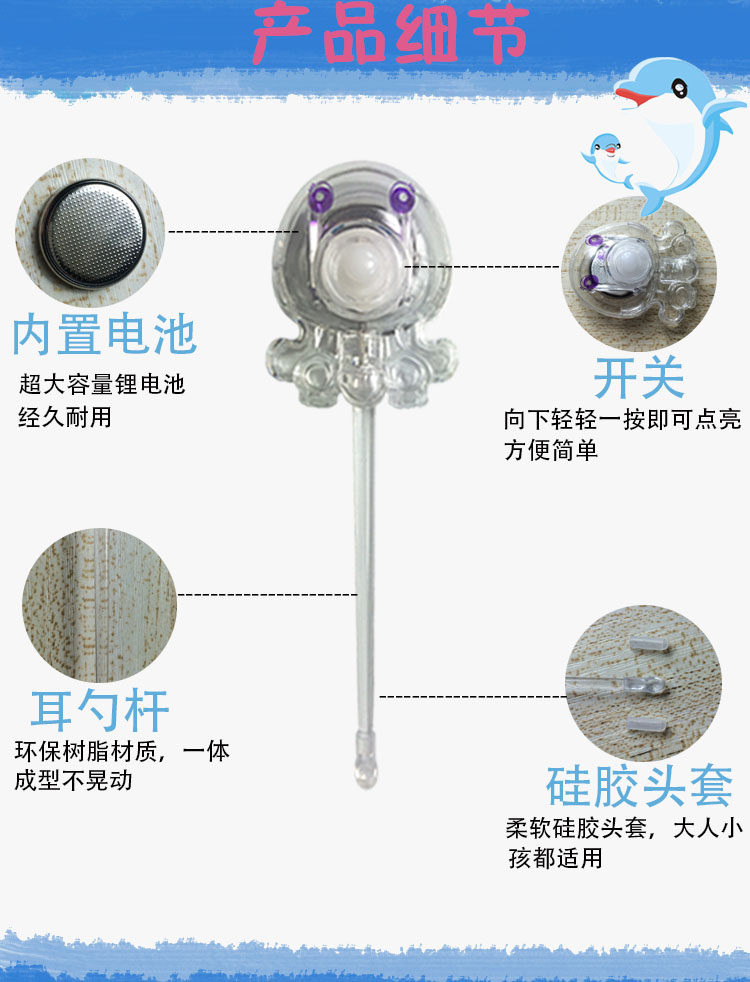Baby And Child Glow Ear Spoon Baby with Light Visible Ear Scoop Silicone Soft Head Adult Safe Digging Ear Dirt
