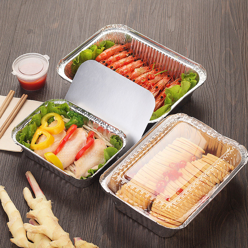 Paper Butler Family Tin Paper Box Disposable Aluminum Foil Dining Box Barbecue Takeaway Packaging Box Rectangular Baking With Lid Home