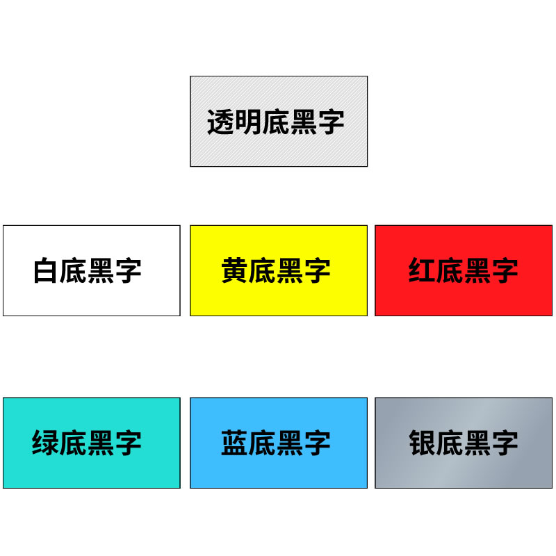 18mm Black on white TZE-241 18mm Black on red TZE-441 18mm Black on yellow TZE-641 18mm Black on blue TZE-