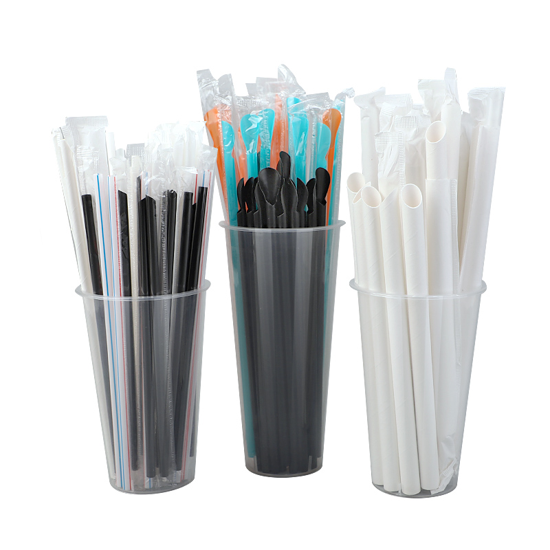 Eat Rice Disposable Straw Independent Packaging Bendable transparent Beverage soy milk Milk Tea Straw Black Straws
