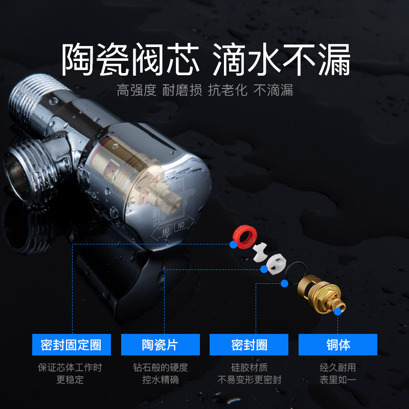 Submersible fine copper triangular valve water heater switch thickened eight-word valve hot and cold water universal lengthened water stop valve Home