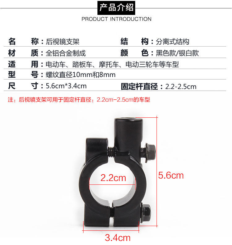 Bicycle electric car Motorcycle rear mirror seat mirror mirror base 8mm10mm bracket support
