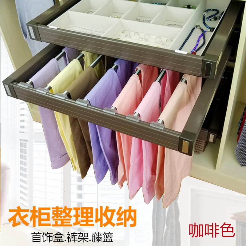 Wardrobe extended pants rack jewelry box hanger drawer plate pull basket top pack side pants frame hardware piece
