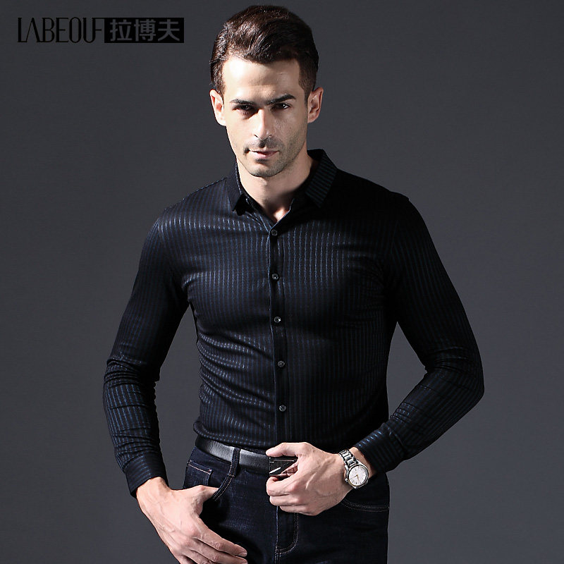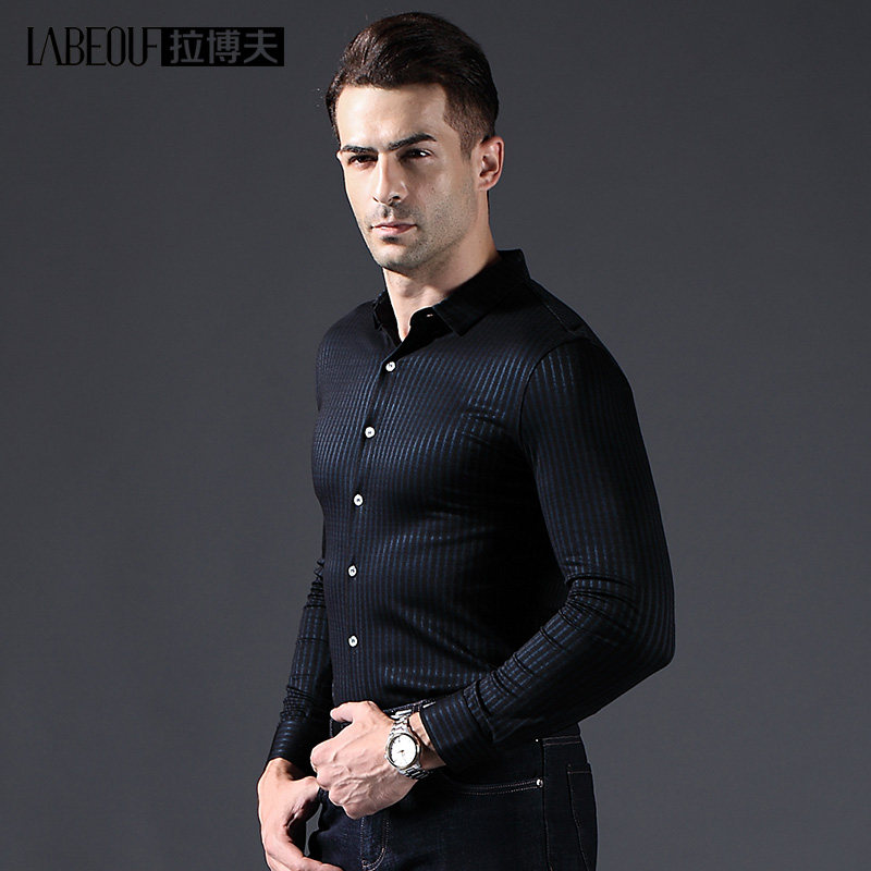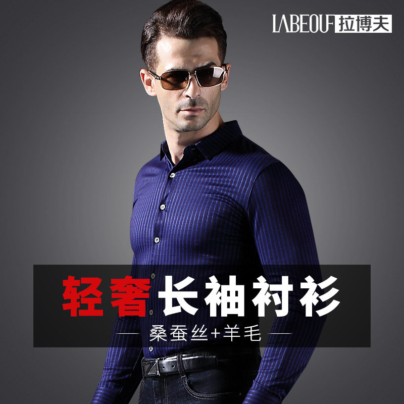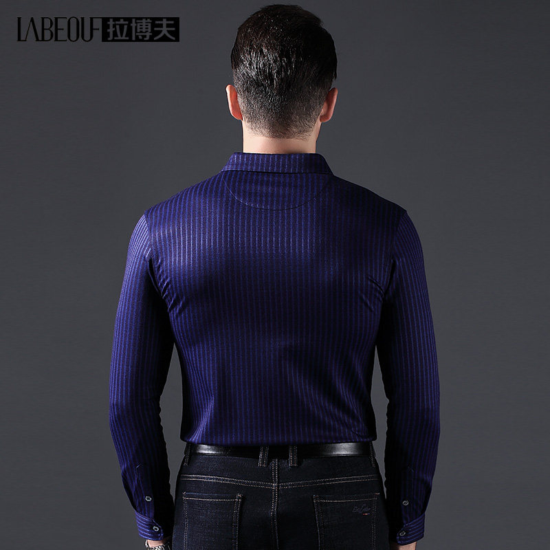 Labov 2021 spring and autumn long-sleeved shirt men's wool warm middle-aged men's business casual striped slim-fit shirt