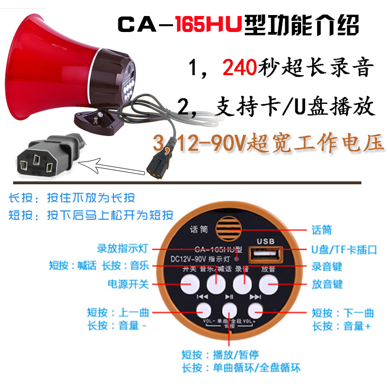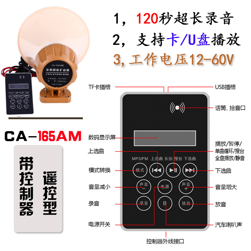 Double Drill 12V 60V High Power On-board Megaphone Loudspeaker Propaganda Called Selling Speaker Card Recording Yelling Speaker