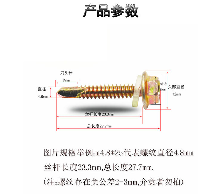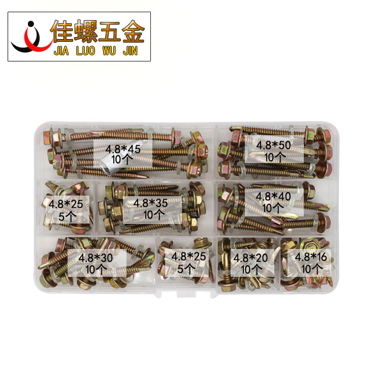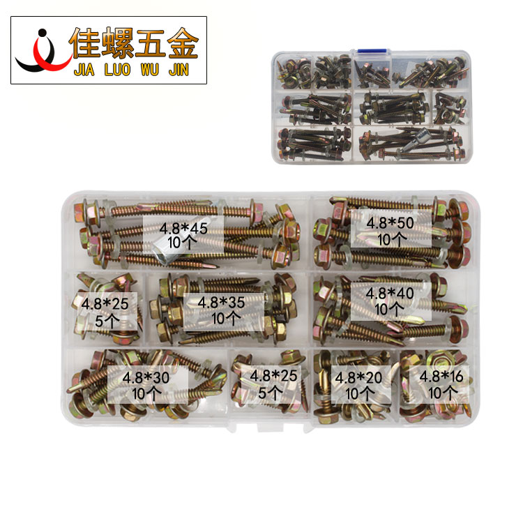 Mixed outer hexagonal drill tail screw set color steel tile dovetail home self-drilling self-tapping nail national standard 4 8