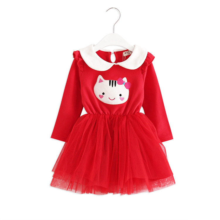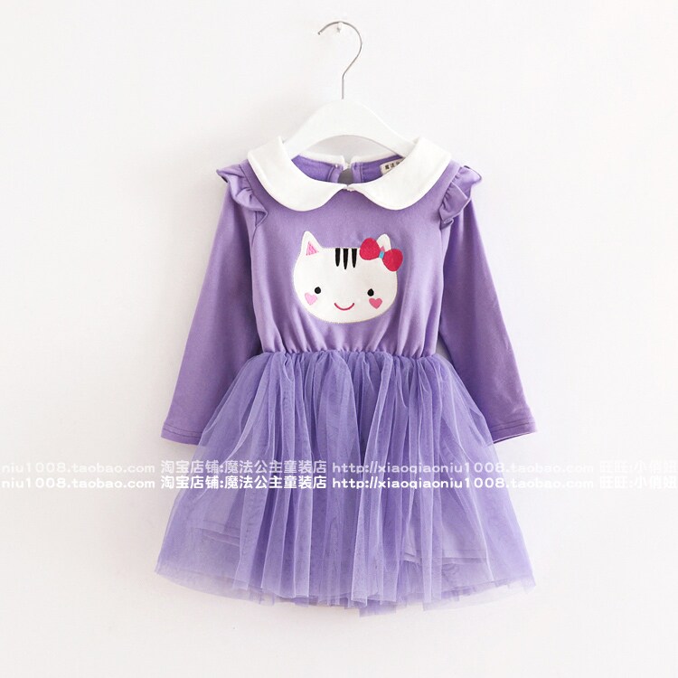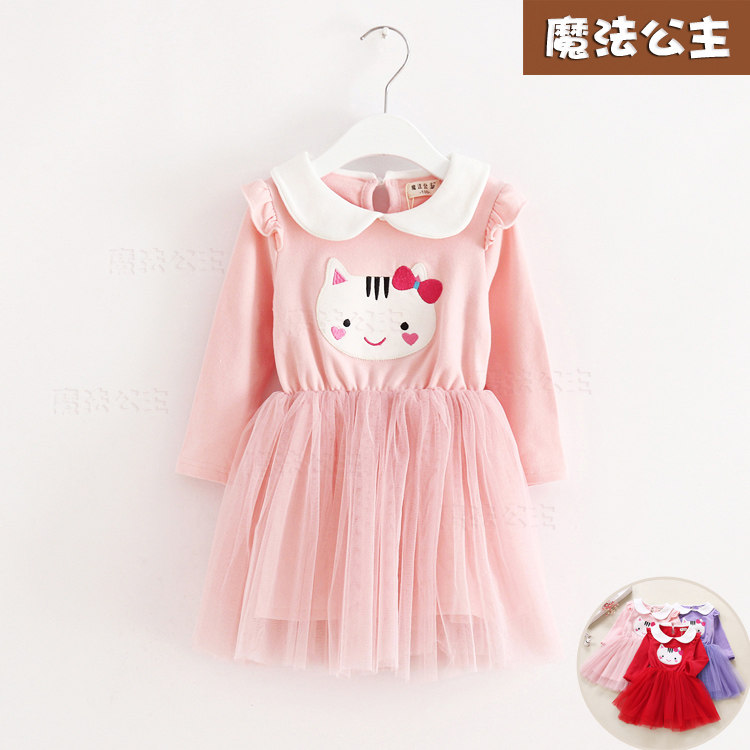 Girls dress spring and autumn Korean version of the big boy girl long-sleeved dress spring dress princess skirt fluffy yarn