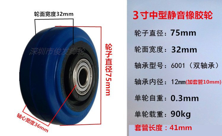3 inch silent rubber wheel trailer trolley wheel shelf dining car trolley wheel silent universal wheel single wheel