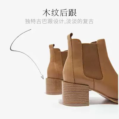 BeauToday2021 spring new women's shoes coarse heel short boots plus velvet leather British Chelsea boots Martin boots